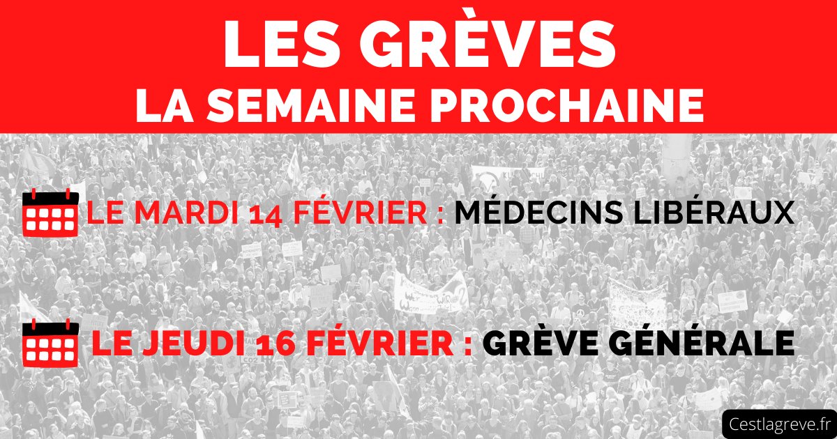 Web Retraites. Web Temps de lecture 0 min. Web Une cinquième journée de mobilisation le jeudi 16 février Les 8 principaux syndicats de France ont dores et déjà annoncé la date de la grève suivante.